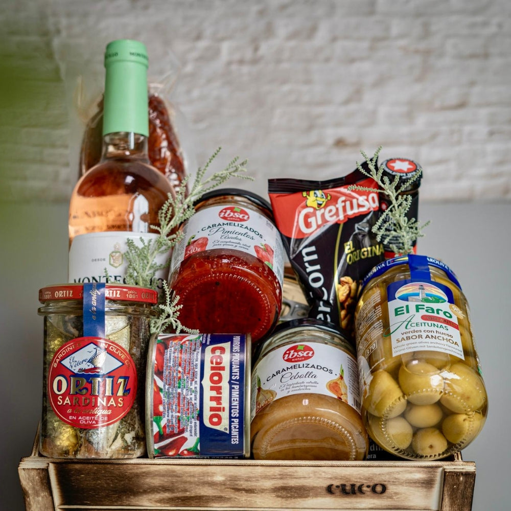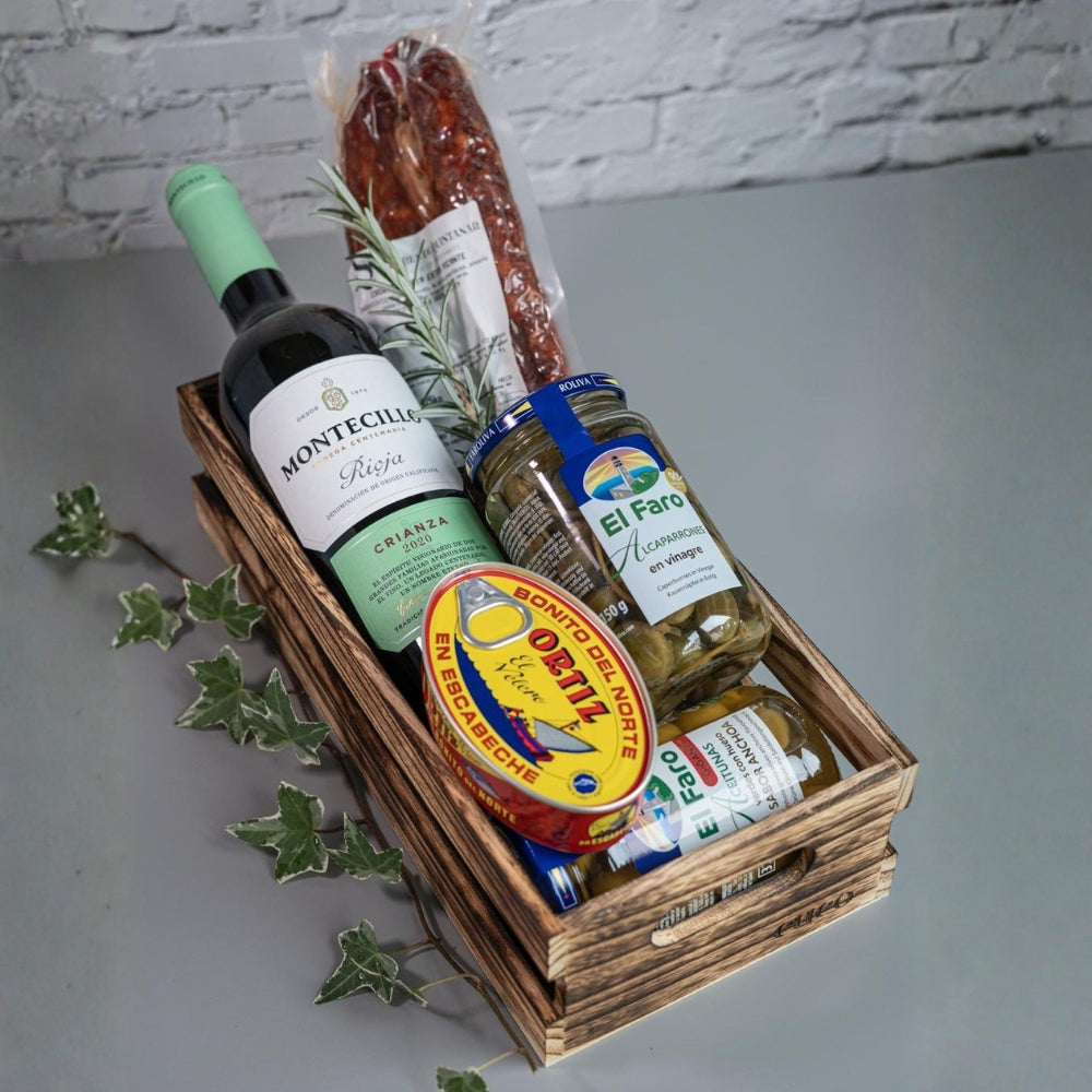 Für besondere Anlässe zaubere ich liebevoll gefüllte Genussboxen mit ausgesuchter spanischer Feinkost. Von Rotwein über Oliven bis hin zu kleinen Köstlichkeiten – perfekt, um Freunden, Familie oder Kollegen eine kleine kulinarische Reise nach Spanien zu schenken.